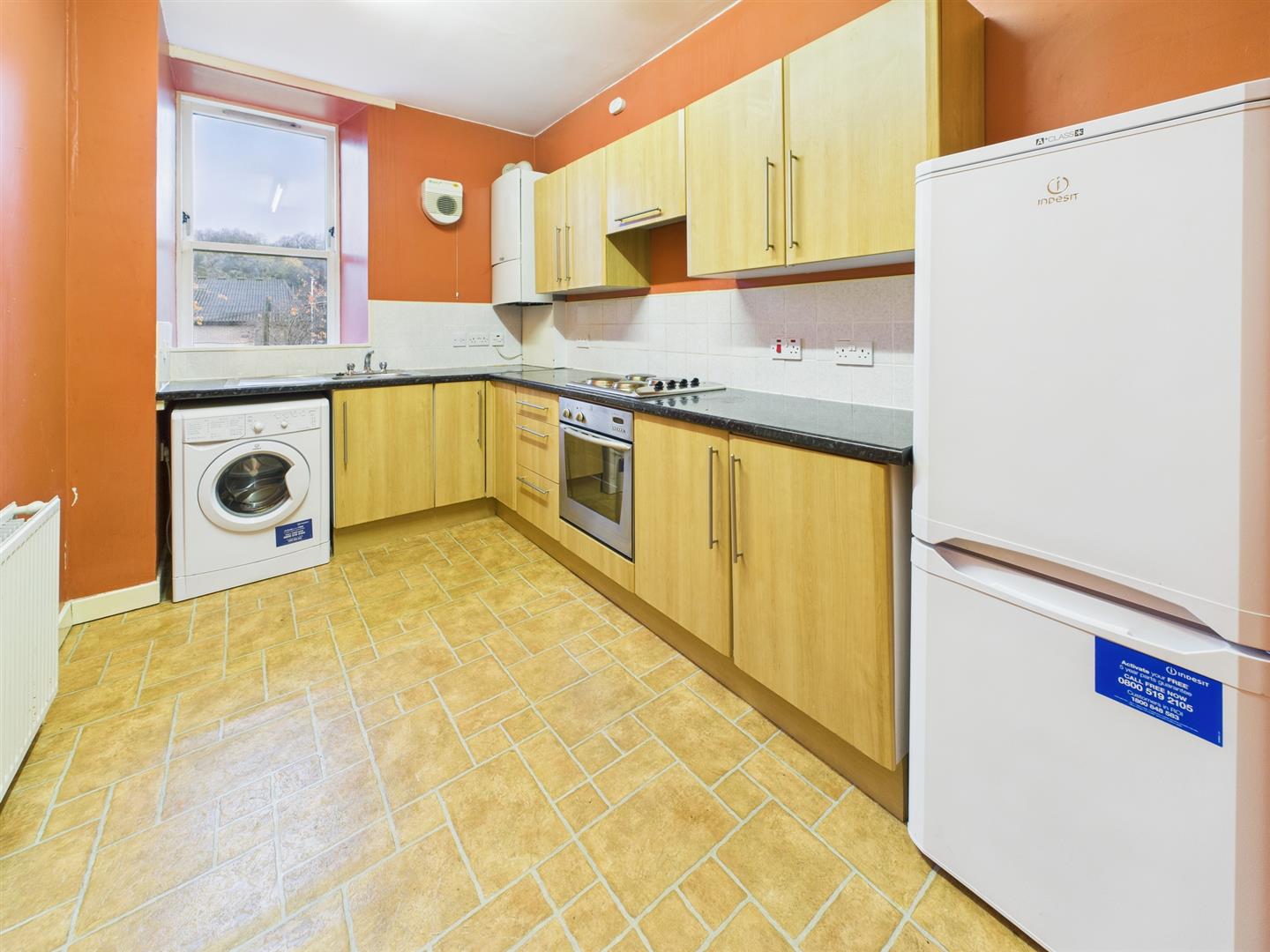 On entering the door of the common close, you take the stairs to the main door of the flat. On entry, you step into a welcoming reception hallway, from which you can access all rooms. Firstly, to the right of the property is the dining kitchen featuring a selection of floor and wall-mounted units, as well as contrasting countertops. Straight ahead, you will find the bathroom with a three-piece suite and a shower over the bath. The lounge sits at the front with a picture window and provides lots of natural light. Finishing the accommodation to the rear is the double bedroom.