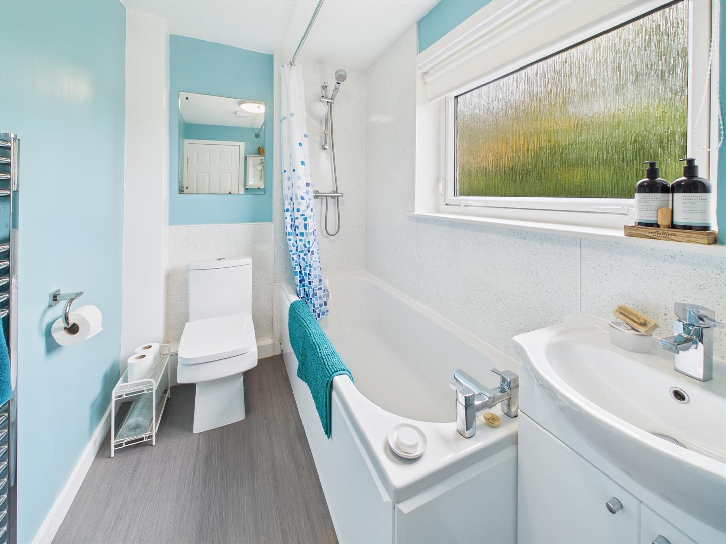 Taking the stairs to the upper level, there are two good-sized bedrooms, with bedroom two having a built-in storage cupboard. The family bathroom, with a three-piece suite and a shower over the bath, finishes this level.