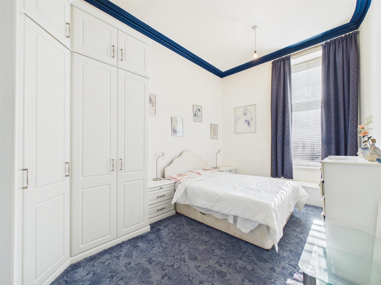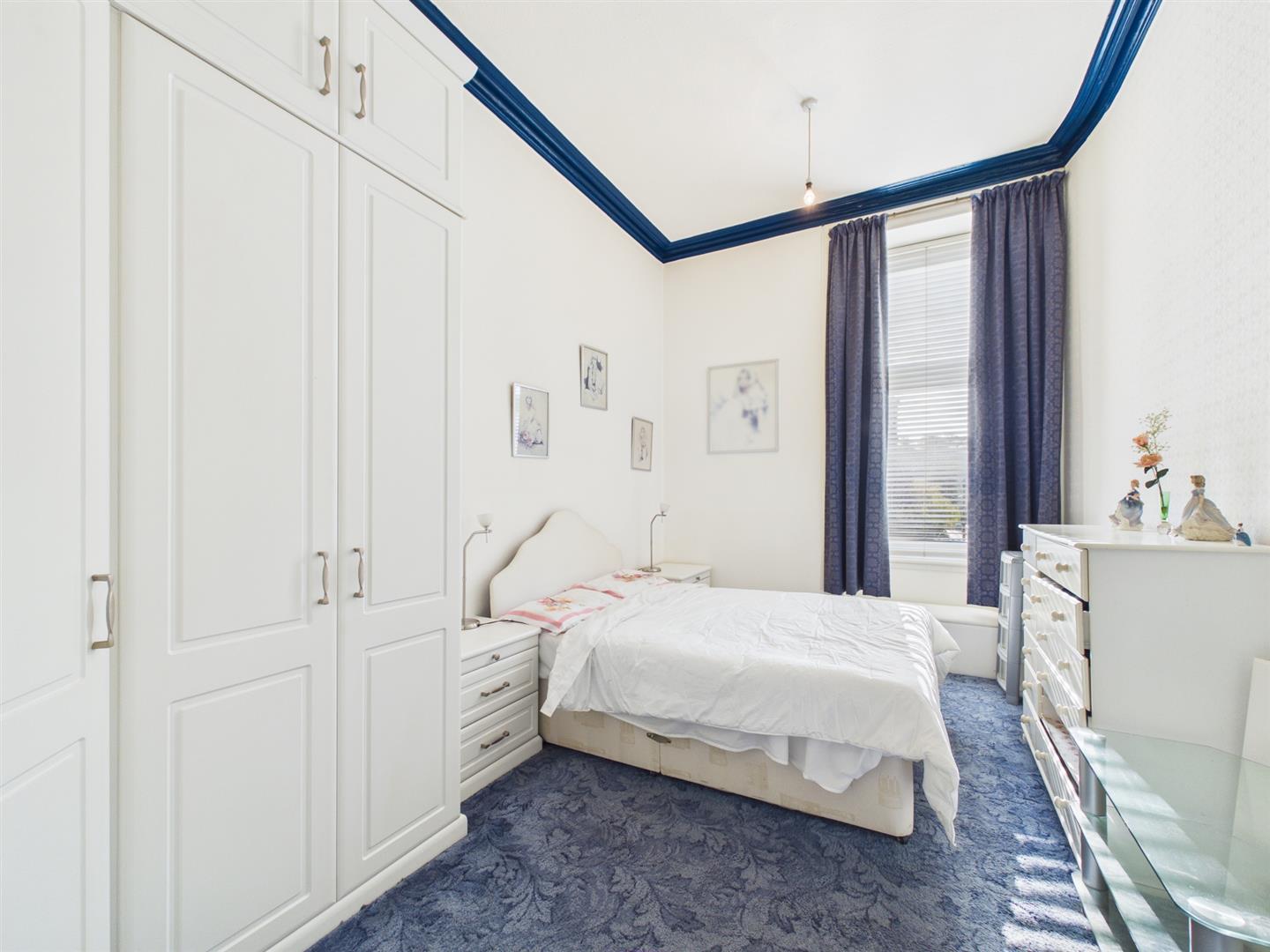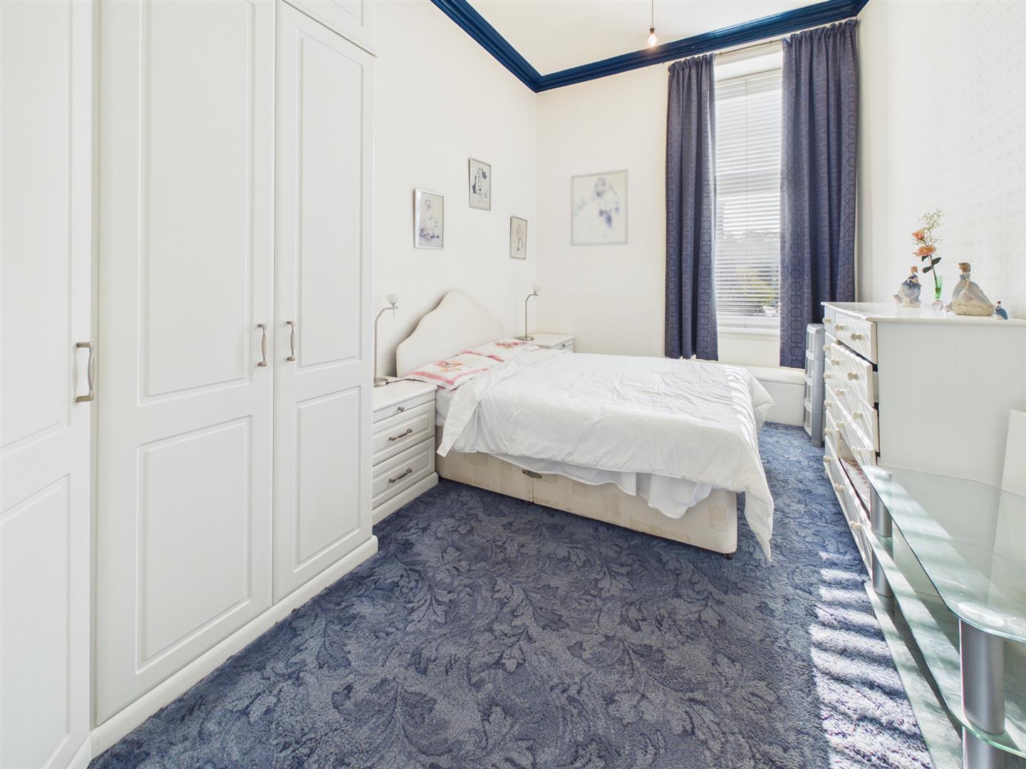 From the secure entry door of the block, you enter the communal hallway with traditional features. On taking the stairs, you arrive at the flat's main door on the first floor. Entering the flat to the welcoming reception hall, you will have access to all rooms. To the front of the property is the bright and spacious lounge, benefitting from a large bay window providing lots of natural light from its open outlooks looking over Kilmarnock Road. The dining kitchen sits to the rear of the property and has a range of floor and wall-mounted units with a breakfasting island giving more storage with contrasting work tops. The double bedroom sits to the front of the property again with open outlooks. Completing the property is the family bathroom with a three-piece suite and a shower over bath with tiled splashback.