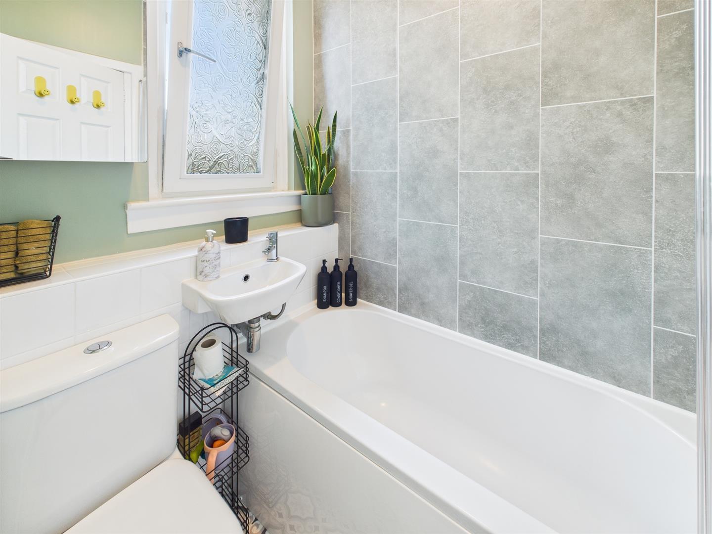 The accommodation comprises a main door entry with stair access to the main living space. On taking the stairs, you enter the main hall, where you will have access to all rooms. To the rear of the property is the master double bedroom, featuring built-in storage. The lounge sits at the front, offering an open outlook and providing ample natural light through a large picture window. The second double bedroom sits to the rear, just off the lounge, overlooking the rear garden. The modern kitchen is at the front of the property, with a range of floor and wall units and contrasting worktops. Completing the property is the family bathroom with three three-piece suite and a shower over the bath.