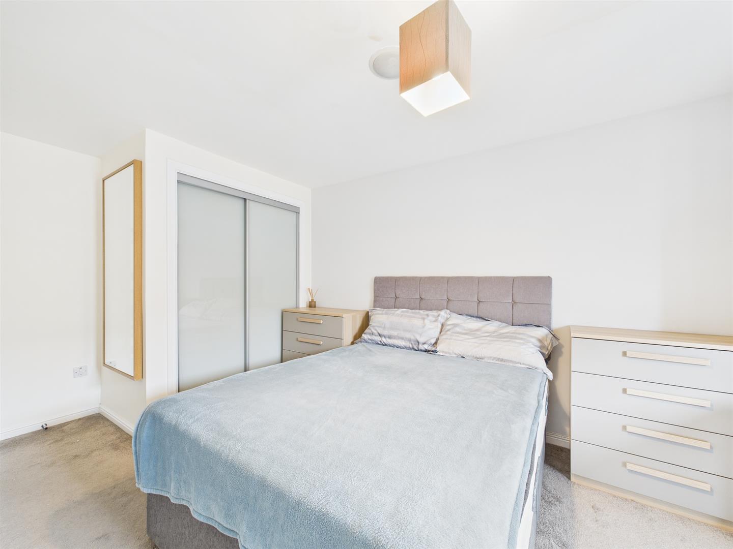 Through the main door, you are welcomed into the bright and airy entrance hallway with a large storage cupboard. To the rear of the property is the lounge with a large Juliet style double door formation giving lots of natural light with its southern open outlook. Open to the lounge is the fitted dining kitchen with floor and wall-mounted units and contrasting worktops. There are two bedrooms to the front of the property, both with built-in storage. Finishing this level is the family bathroom with a four-piece suite, giving the option of a bath or walk-in shower.