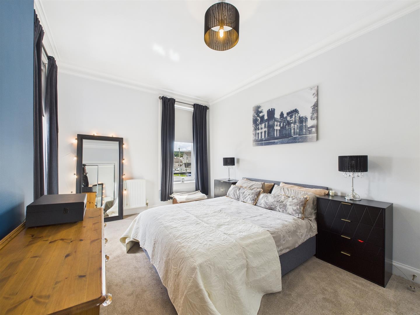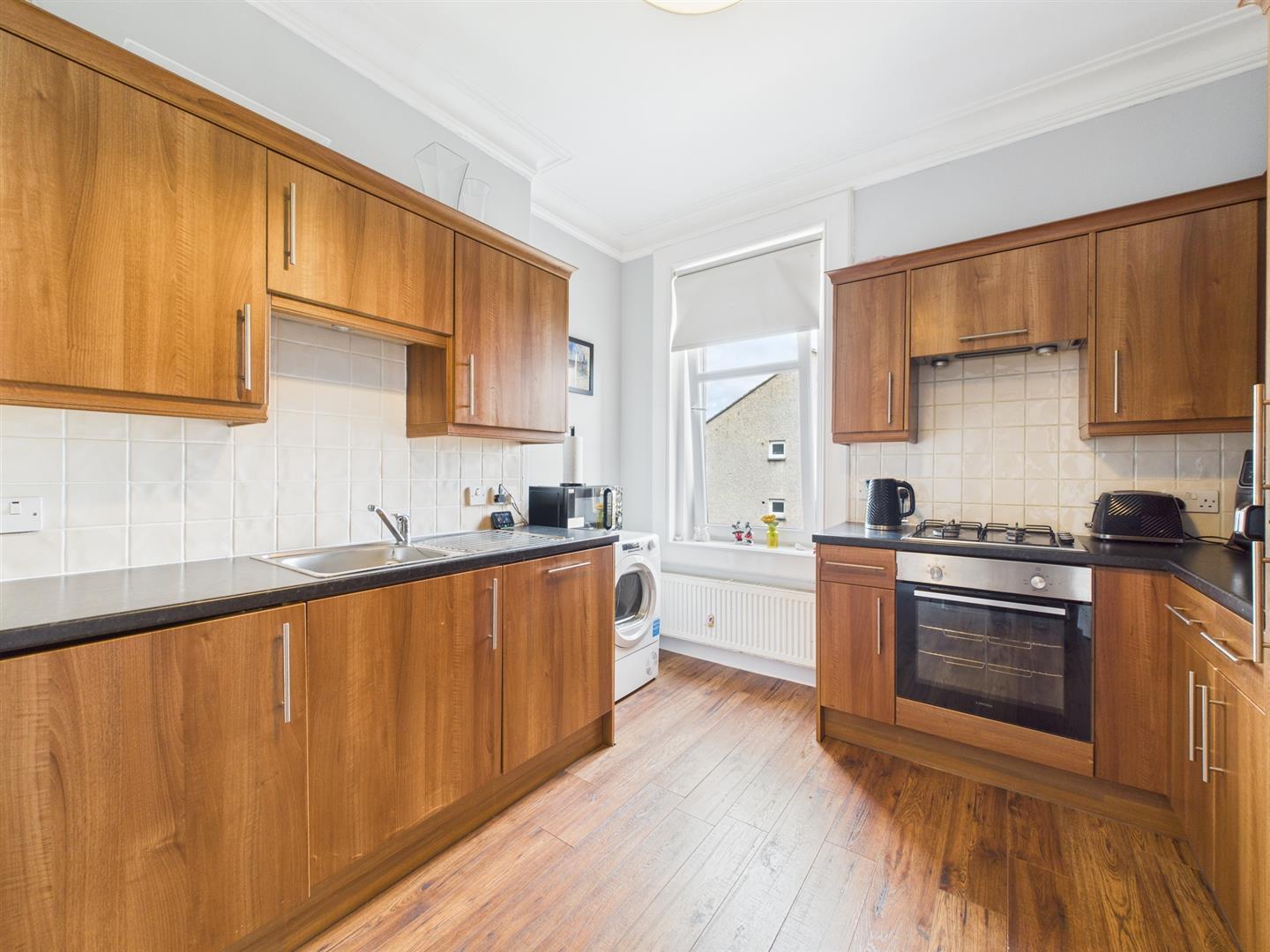 This stunning main door upper conversion top floor flat is located in a great location with Johnstone city centre on your doorstep. On entering the property through the main door, you step into a welcoming reception vestibule with stairs taking you to the upper level from where you will have access to all rooms. To the front is the lounge with dual window formation, giving lots of natural light in the lounge as it sits to the corner of the building. Just off the hall is the modern dining kitchen with a range of floor and wall-mounted units along with contrasting worktops. There are two good-sized bedrooms, with the master benefiting from a built-in mirrored storage space. Completing the property is the bathroom with three-piece suite and shower over bath.