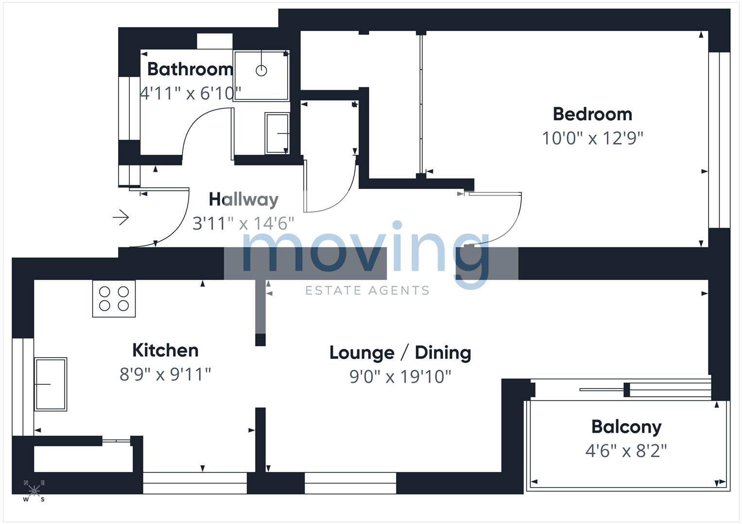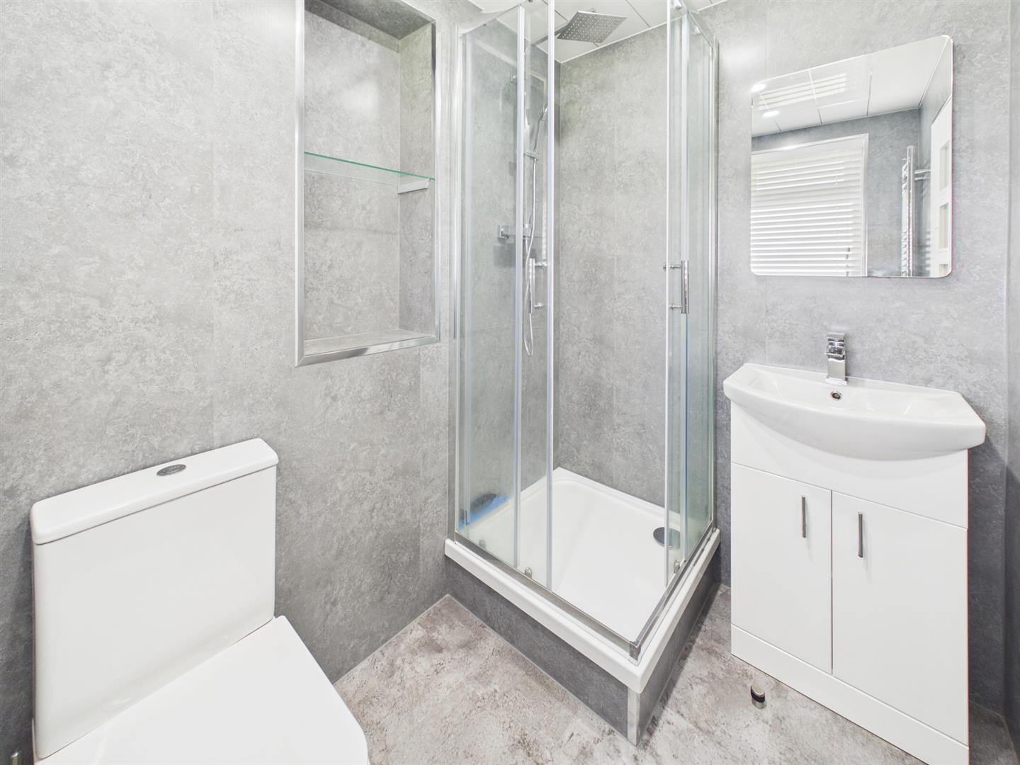 As you enter the property, on the left is access to the family shower room with a walk-in shower unit with wet wall splashback, wc, and basin. To the rear is the double bedroom. benefiting from built-in mirrored storage. The bright and spacious lounge is located at the end of the hallway to the right, featuring a patio sliding door window that provides exceptional lighting and access to the balcony with its open outlooks. Completing the property is the fitted kitchen, with a semi-open plan to the lounge, featuring a range of base and wall-mounted units and contrasting worktops.