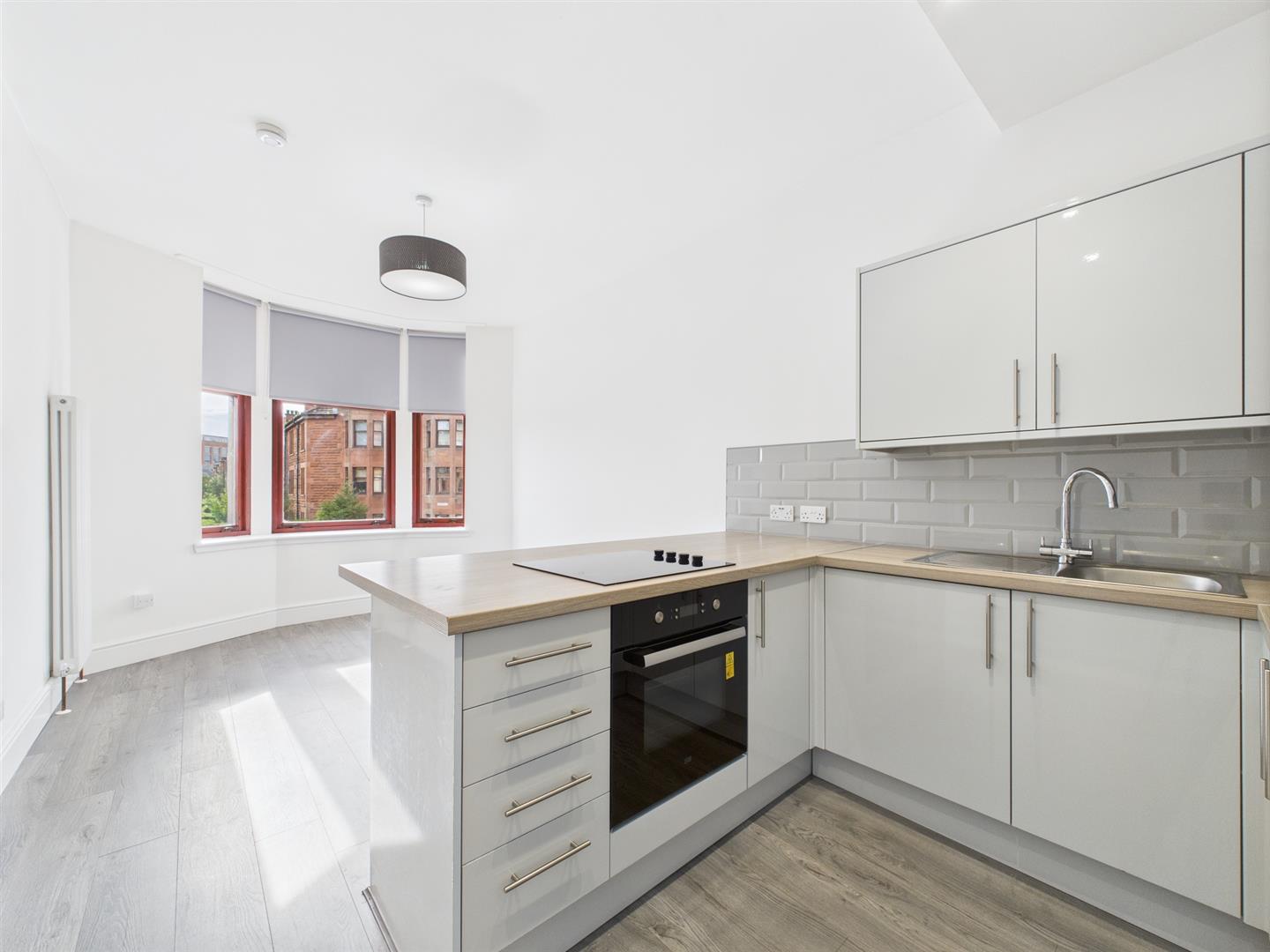 This traditional sandstone flat in the Battlefield area offers accommodation all on one level. Taking the stairs from the secured entry common close you enter the property. On entry, you step into a welcoming reception hallway, from where you will have access to all rooms. Straight ahead to the front of the property is the lounge with open plan modern kitchen with a range of floor and wall-mounted units, integrated appliances and contrasting work surfaces. From the hall, there is access to two double bedrooms. Finishing the accommodation is the family bathroom with a three-piece suite and shower over bath with floor-to-ceiling tiling. The property itself has a bright and spacious feel with open outlooks giving lots of natural light.