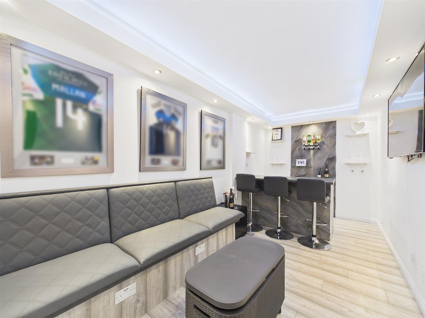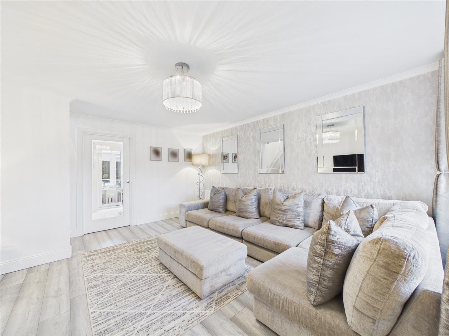 The accommodation on offer includes a welcoming entrance hallway with wc, leading through to the lounge area, with a picture window that provides plenty of natural light and open outlooks. The lounge, in turn, leads through to the dining room and then again to the extended part of the property to the rear, with a modern dining kitchen. The kitchen has a range of floor and wall-mounted units with contrasting worktops. From the kitchen, there is a door to the side of the property, with a utility cupboard leading again through to the converted garage, now used as a bar and sitting area, and could easily be converted to a bedroom or work-from-home office. There are double patio doors just off the dining room, giving access to the conservatory and, again, to the well-kept garden with decked and astro turf areas.