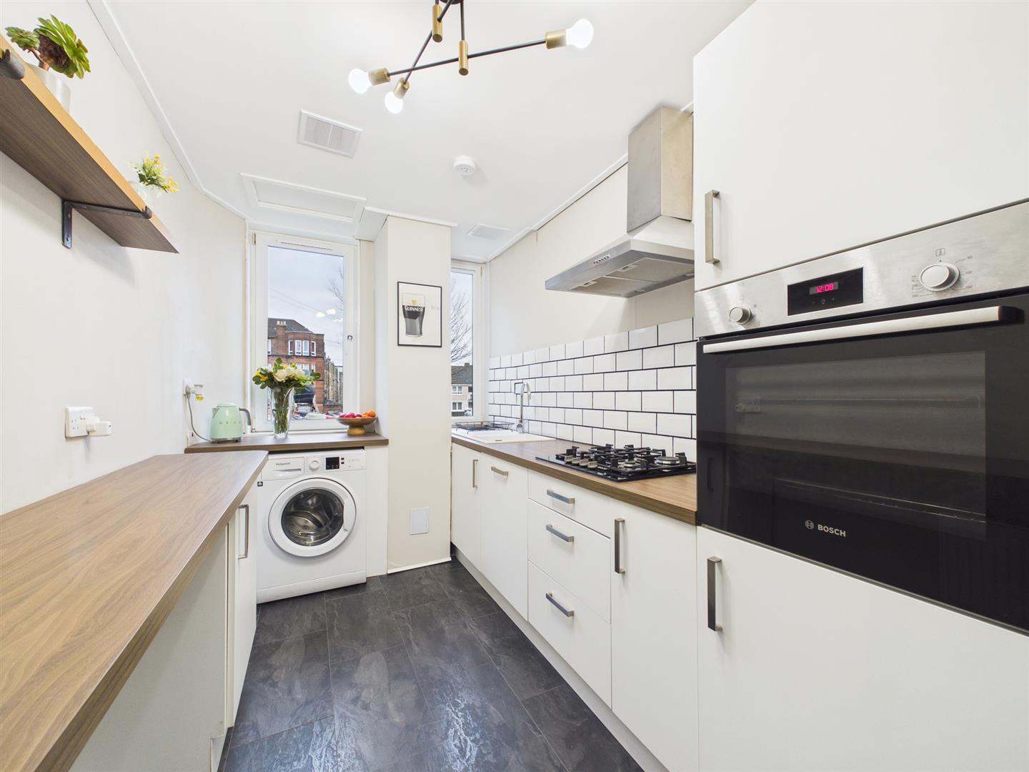 From the secure entry door of the block, you take the stairs and enter the communal hallway to arrive at the flat on the first floor. On entering the flat to the welcoming reception hall, you will have access to all rooms. To the front of the property is the bright and spacious lounge benefitting from a large bay window giving lots of natural light due to the open outlook. The kitchen sits to the rear and is a galley style and has a range of floor and wall-mounted units with contrasting work tops. The shower room has a walk-in, fully tiled shower unit, WC and basin. Completing the property are two tastefully decorated double bedrooms, one to the front and one to the rear.