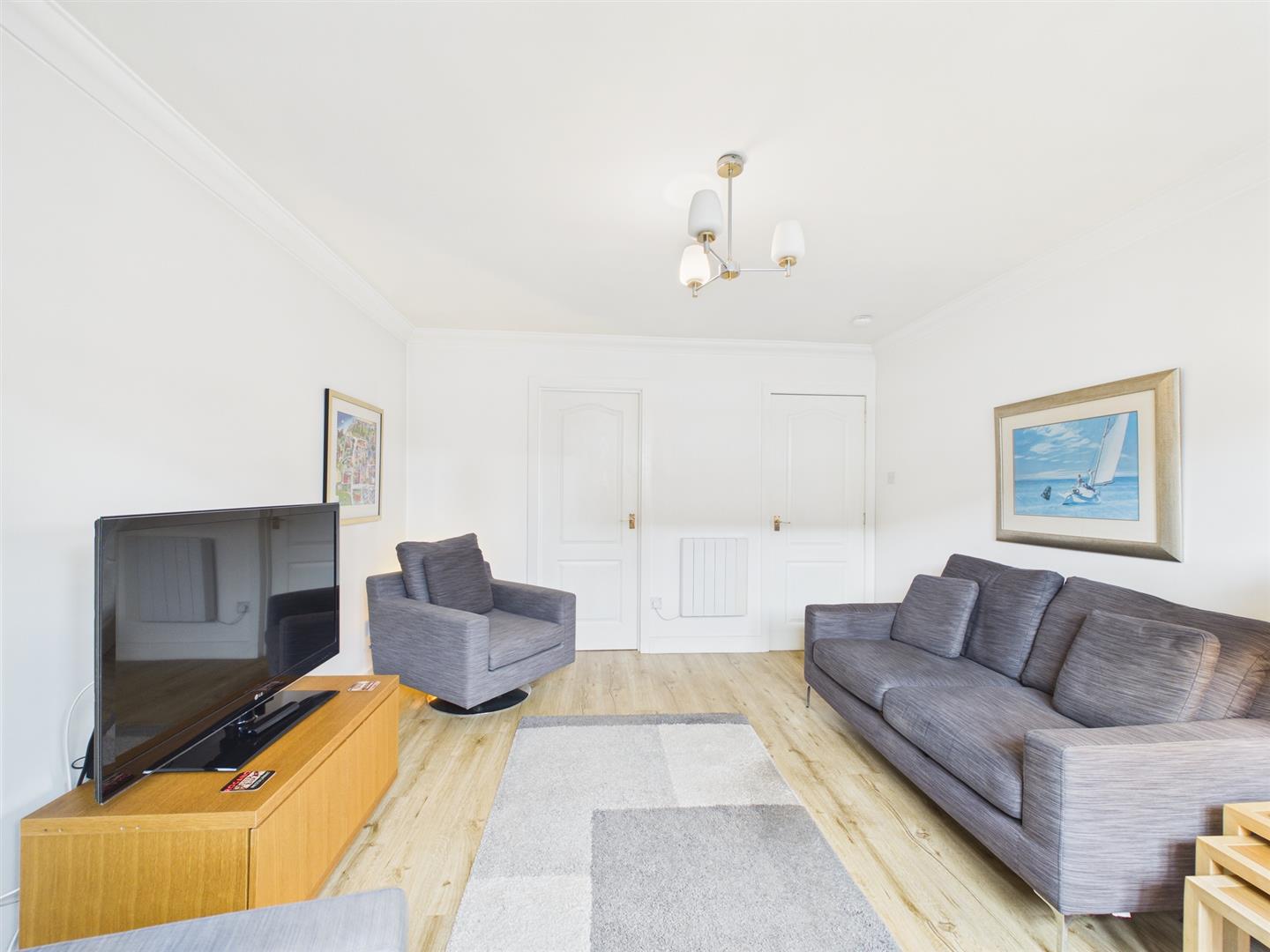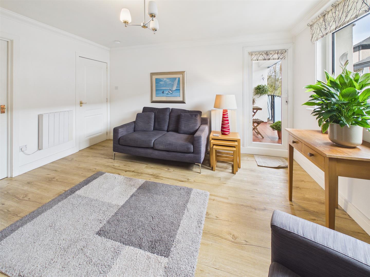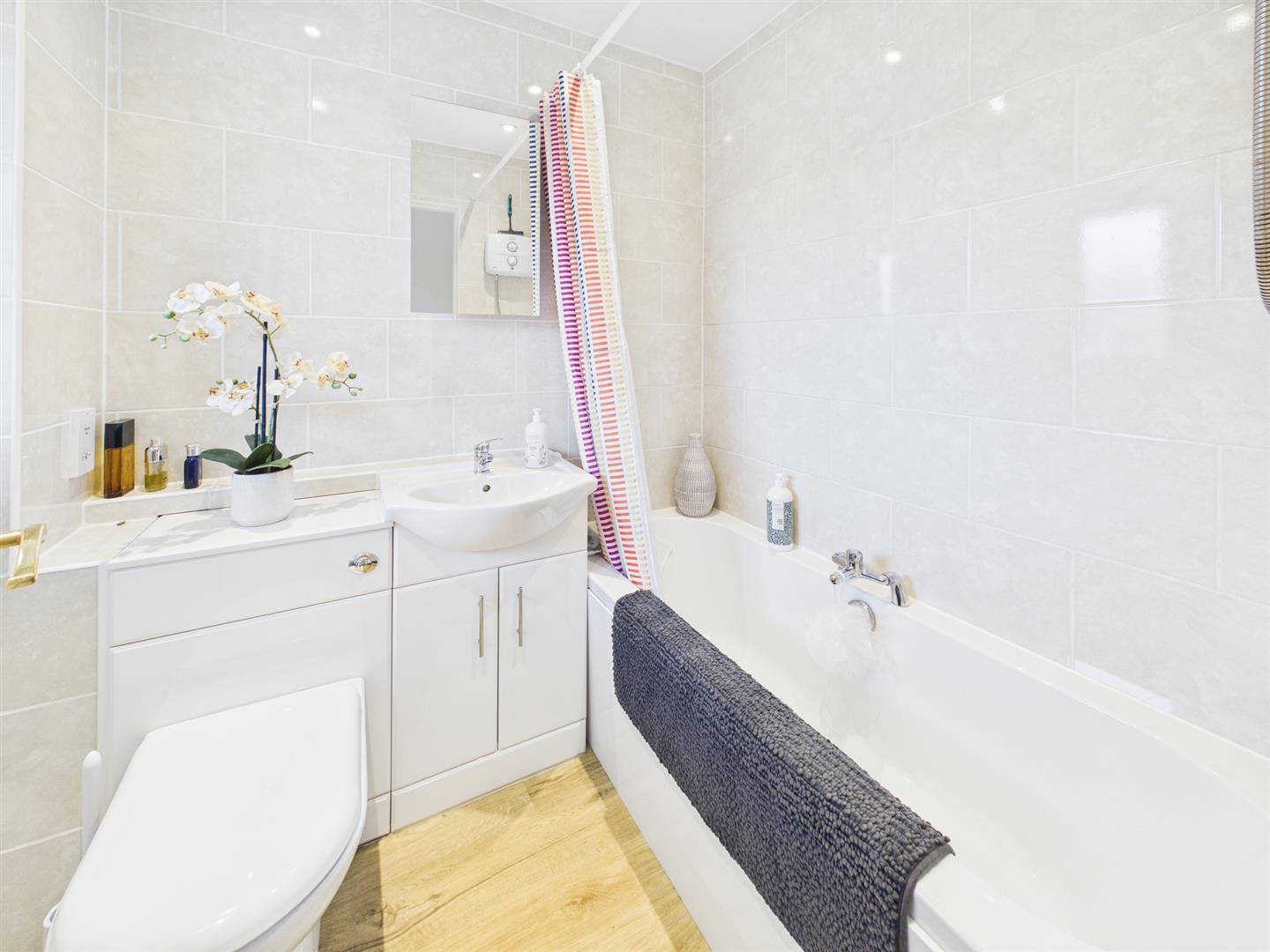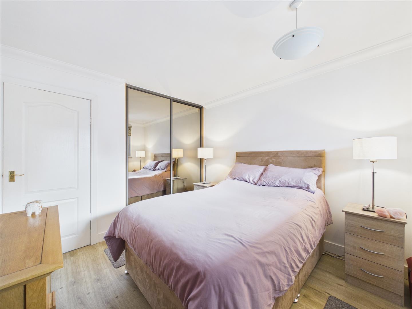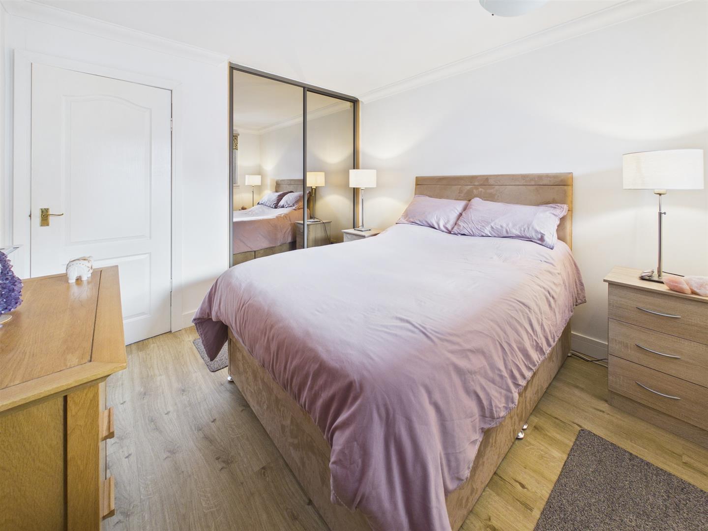 The property further benefits from electric wall-mounted heating, an Electric Flow hot water system, double-glazing, an external communal tumble-dryer, vinyl flooring from the lounge through the hall into the kitchen and well-kept communal rear garden grounds.