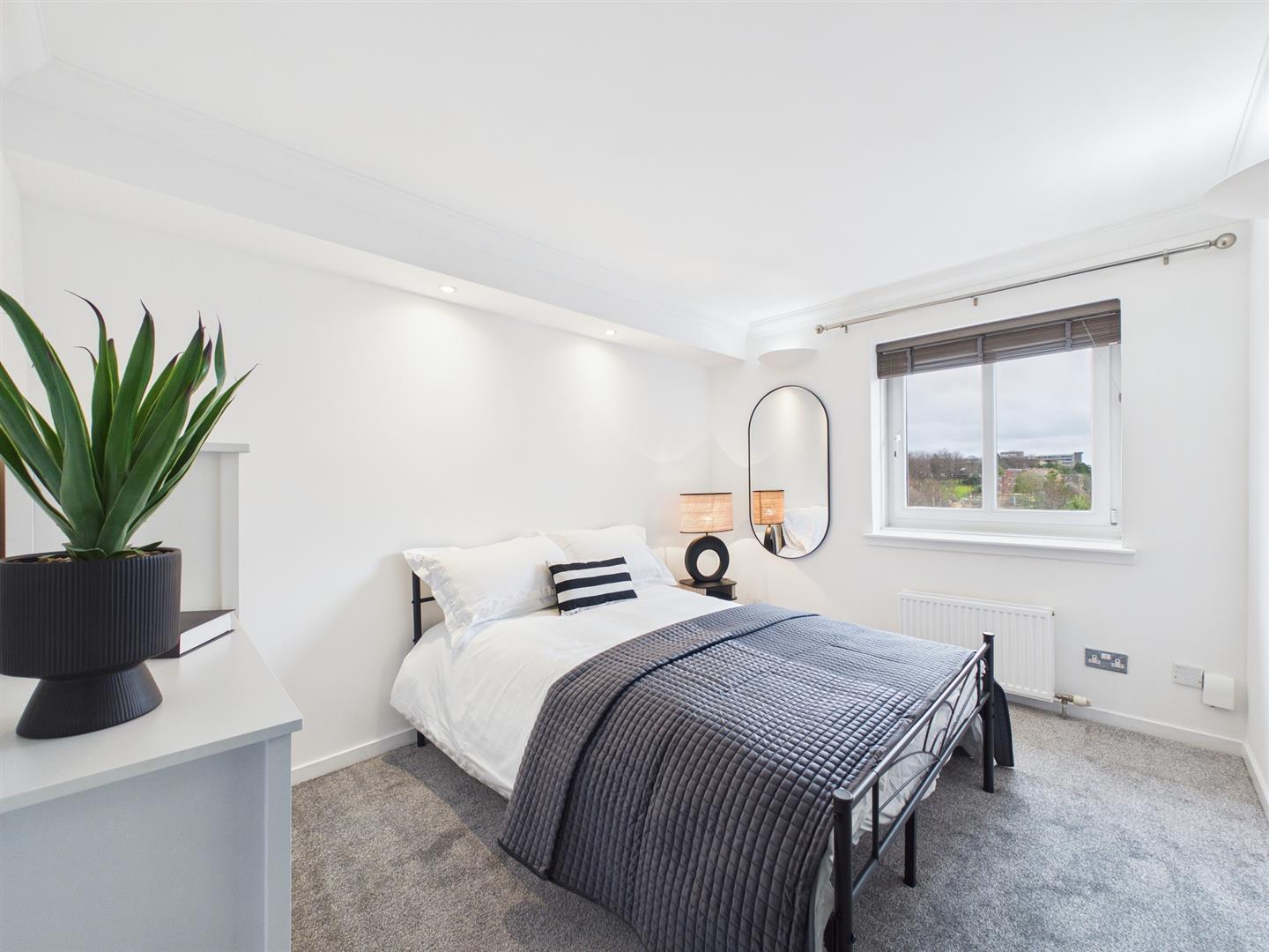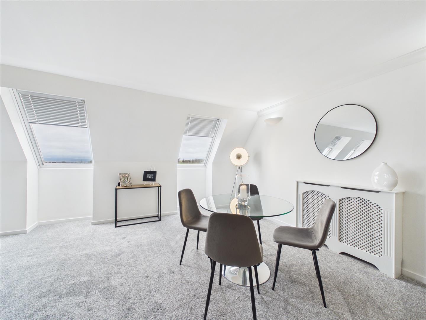 The property further benefits from Gas Central Heating and Double Glazing, a designated private residents’ car park with allocated parking space (accessed via a remote-controlled gate), communal landscaped garden grounds and a delightful residents’ rooftop providing maximum exposure to natural sunlight and enviable views towards the Campsie Fells and Ben Lomond on a clear day. This is an ideal spot for residents to spend time on a bright summer’s evening.