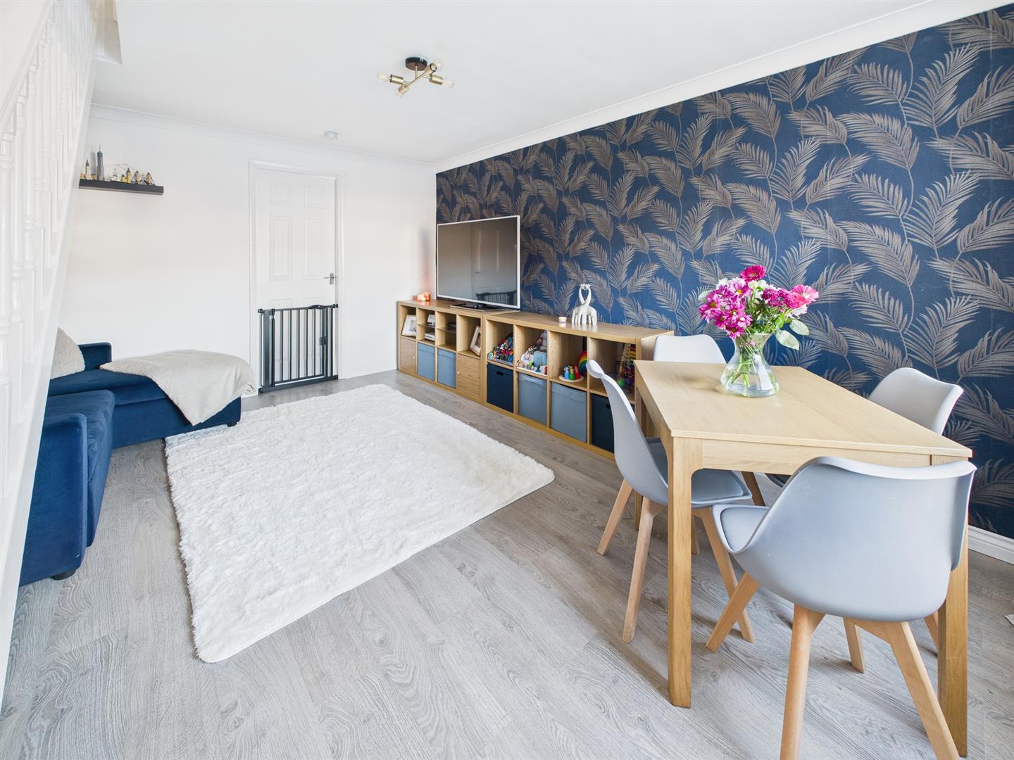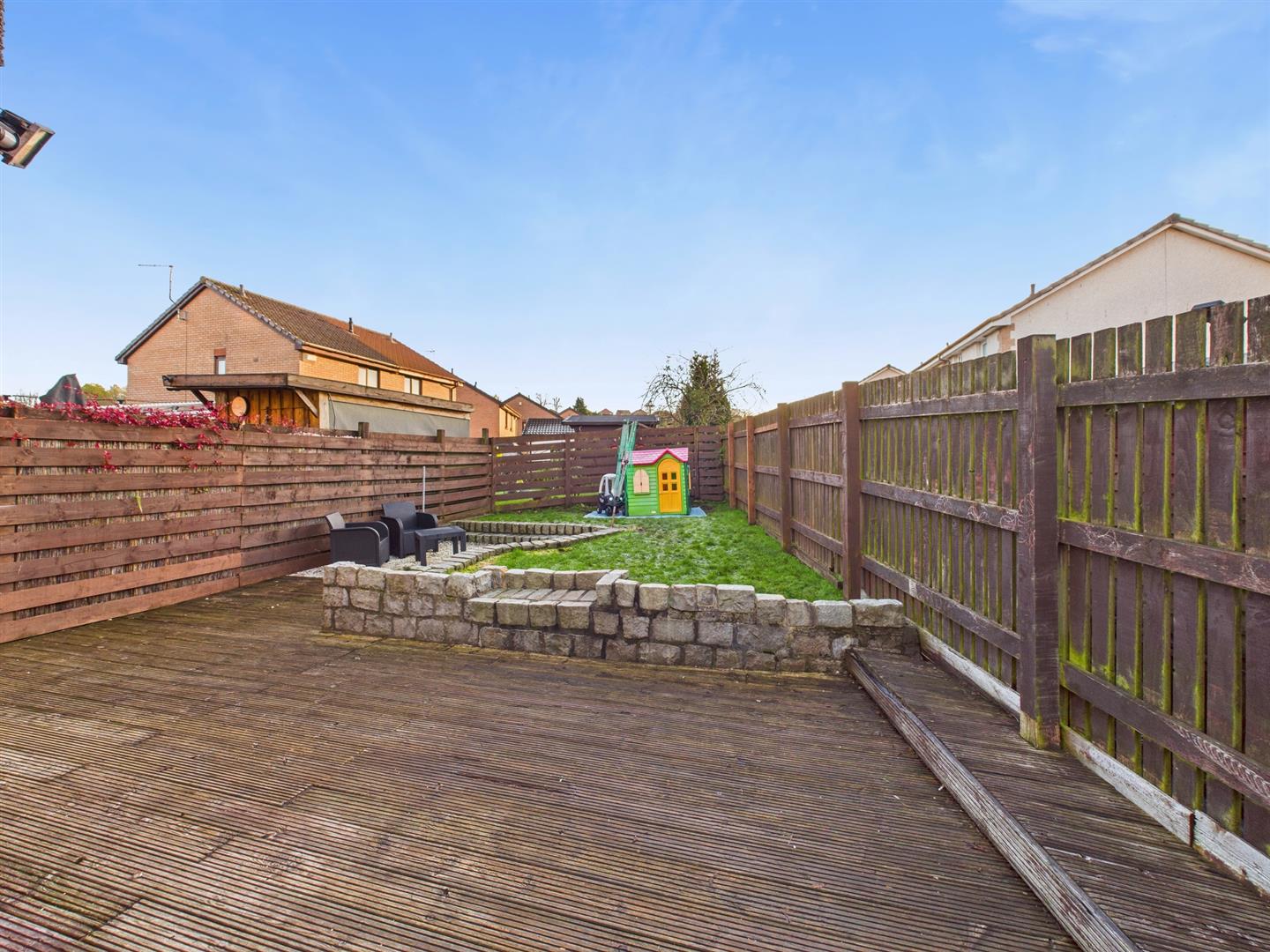Walking from the main door, you enter the spacious entrance hall vestibule. From there, you access the formal lounge, with a bright, airy feel, which leads through to the modern kitchen. The kitchen features both wall and base units with contrasting worktops, and provides door access to the rear of the property, with a well-maintained garden and a large, decked area.