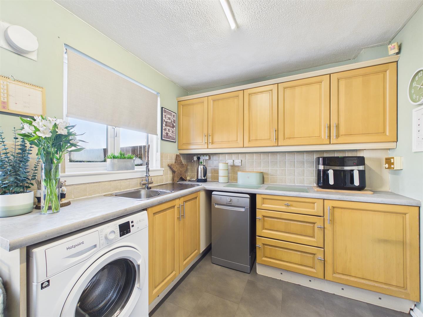 Walking through the main door, you enter the spacious vestibule. From there, you access the formal lounge, which has a bright, airy feel, leading through to the modern kitchen, which features both wall and base units with contrasting worktops and provides door access to the rear of the property, with a well-maintained garden space featuring a stepped patio area with astroturf.