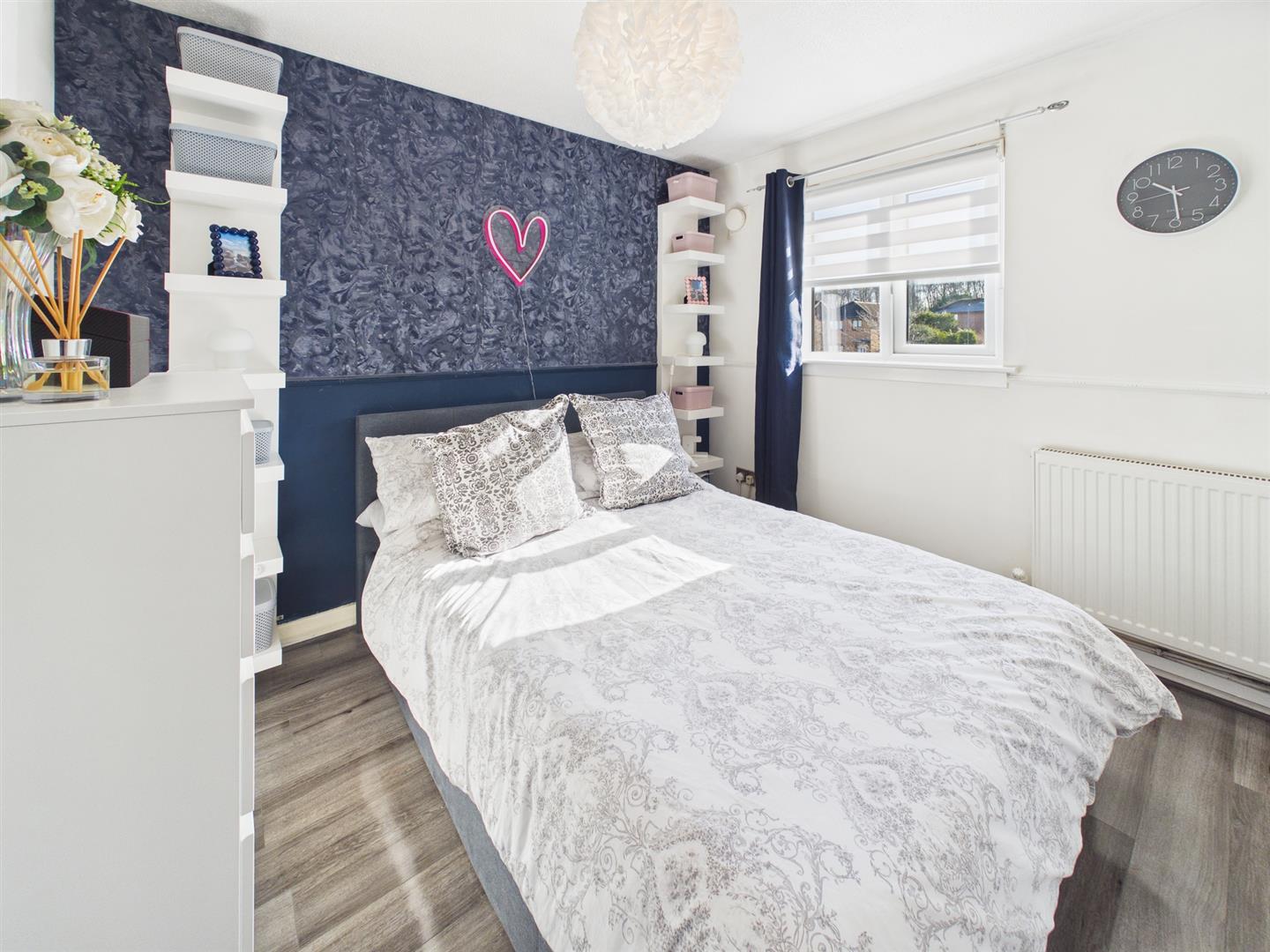 On taking the stairs to the upper level of the home, there are two good-sized bedrooms, with the master bedroom benefiting from built-in mirrored storage. Completing the accommodation is the family shower room with a walk-in shower unit, wc, and basin, finished to a modern style with tiled splashback.