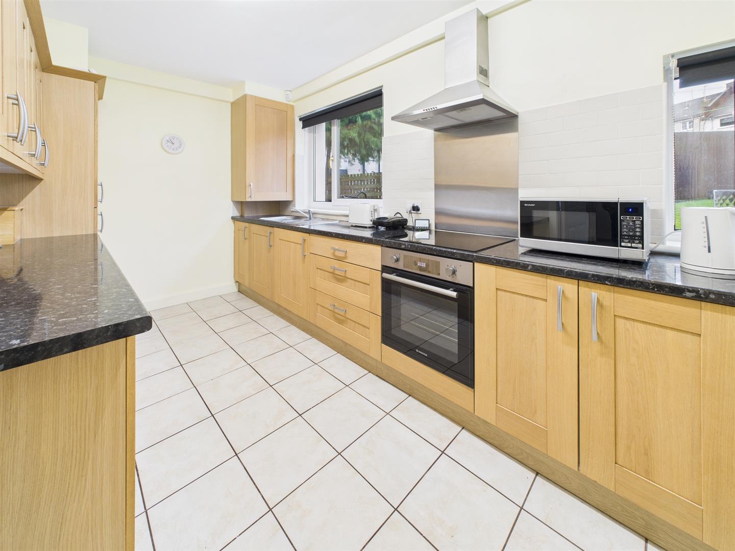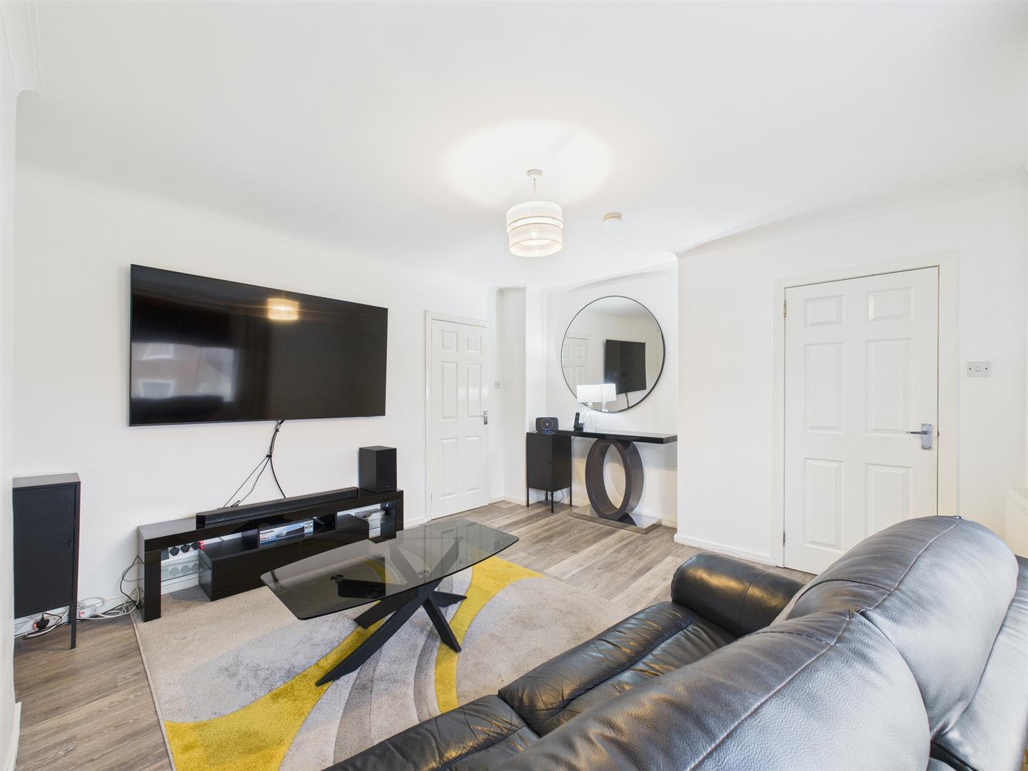 This spacious family home is located in the Cadder area of Glasgow. The accommodation on offer extends to a welcoming entrance hallway with stairs. Directly off the hall to the left is the formal lounge. Through the lounge is the modern kitchen with a range of floor and wall-mounted units with contrasting worktops. From the kitchen to the rear is a small vestibule allowing door access to the rear private lawned gardens. Just to the right sits the WC, giving the convenience of a downstairs cloakroom.