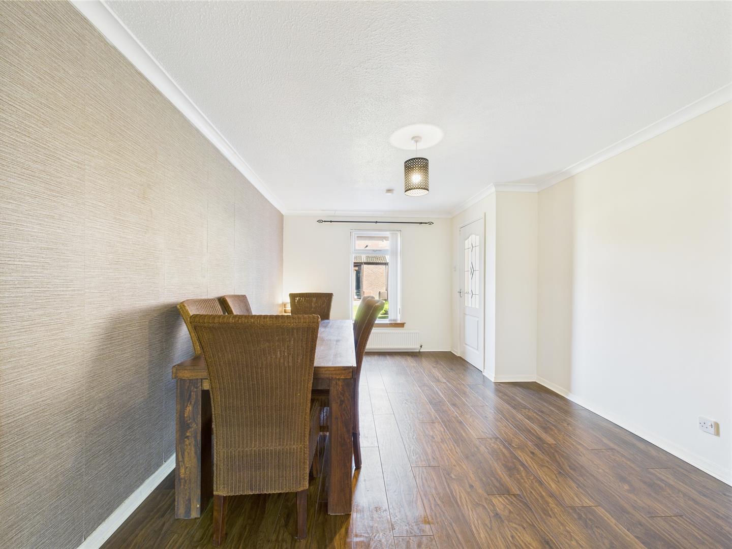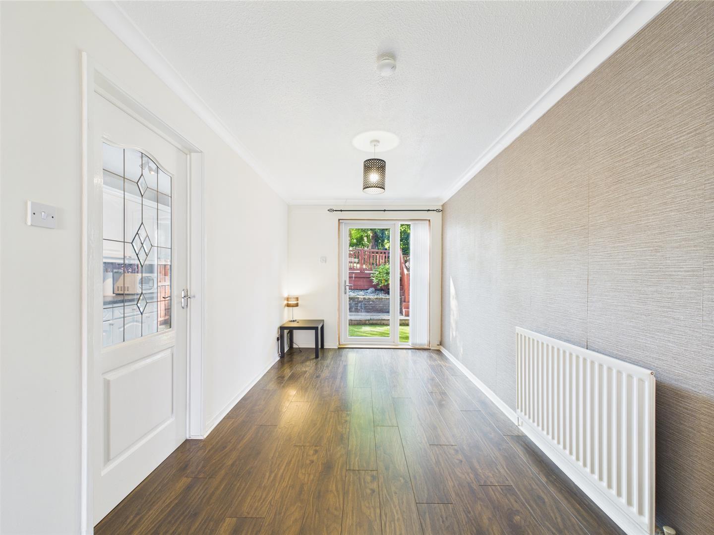 The accommodation on offer extends to a welcoming entrance vestibule. At the front of the property is the bright and spacious lounge, featuring open outlooks and a large picture window that allows for plenty of natural light. To the rear, there is space for dining with a patio door giving access to the rear garden. Also located to the rear is the kitchen, featuring base and wall-mounted units, as well as contrasting work surfaces.